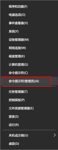 2.右键 左下角“开始”菜单, 点击 命令提示符(管理员)