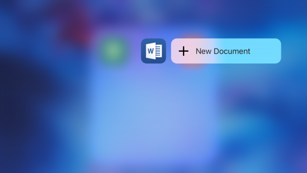 在 iPhone 6s 和 iPhone 6s Plus 上,Word、Excel 和 PowerPoint 新增加了 3D Touch 快捷操作功能。使用主屏幕上的三维触控功能快速创建或打开一个文件。对于 iOS 9 用户,微软 Office 文件可以出现在 Spotlight 搜索中,可以更轻松的定位文件。