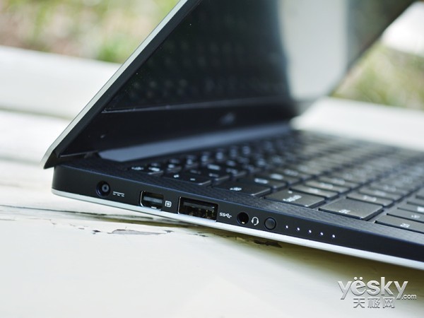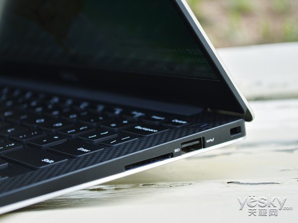 说到接口,可能戴尔XPS 13在这一点上和其它的轻薄本一样都略显薄弱。它仅有两个USB3.0接口,以及一个Mini DP接口和一个耳机接口,一个SD卡接口以及一个电源插口。为了它的轻薄,XPS 13当然牺牲掉了DVD光驱,当然,对于现代人来讲传统光驱的有无已经无关紧要。