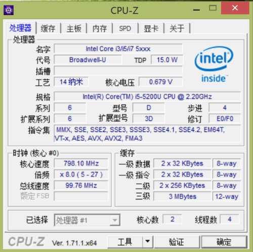 让我们再通过CPU Z来看看XPS 13的硬件究竟如何。由上图可见,全新xps 13的CPU型号为Intel(R) Core(TM)i5-5200U,从目前市场上的轻薄本配置来看该机能配有i5处理器已经是很不错了。对于日常的休闲娱乐和商务办公它都完全可以应付,并且在关键时刻绝对不会给你掉链子滴。