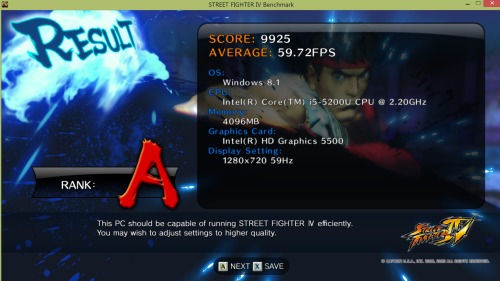 全新戴尔XPS 13在街头霸王4上的表现也是不俗得分为9925分,最终软件给出了一个“A”的成绩也可以堪称轻薄本中的典范了。不要小看这一测试,它恰恰就证明了全新XPS 13的性能完全可以担负起平日里娱乐游戏的责任。不管怎么说,如此成绩的XPS 13确实让小编刮目相看。