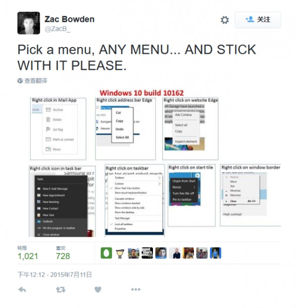 微软称用户反馈是改善Windows 10右键菜单的重要原因