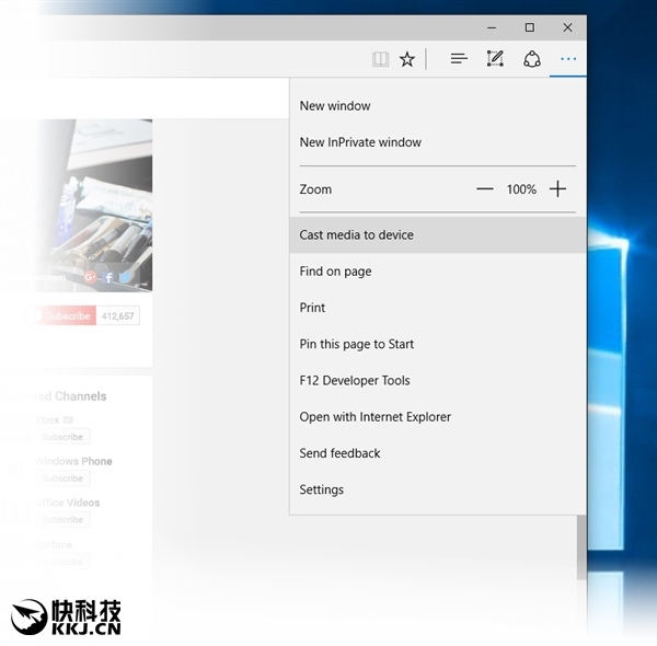 1.Edge浏览器支持媒体内容投射,比如对Youtube视频、Facebook照片辑、Pandora音乐等都可选Miracast或者DLNA设备。