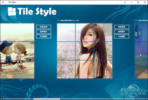 4.点击“选择图片”调入一张自己喜欢的图片,或者直接选择“查看范例”调取示例图。如果一切没有修改,则点击“生成磁贴”开始设置。