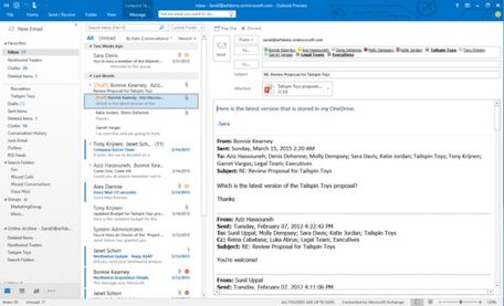 一系列新智能工具:Tell Me,智能学习用户的常用功能,用户可以直接通过自然语言找到需要的功能入口;Clutter,邮件智能归类应用,根据用户信息和习惯分离重要和非重要邮件;Insights,由 Bing 搜索引擎驱动的文本信息检索工具,将结果以更好的阅读体验呈现。