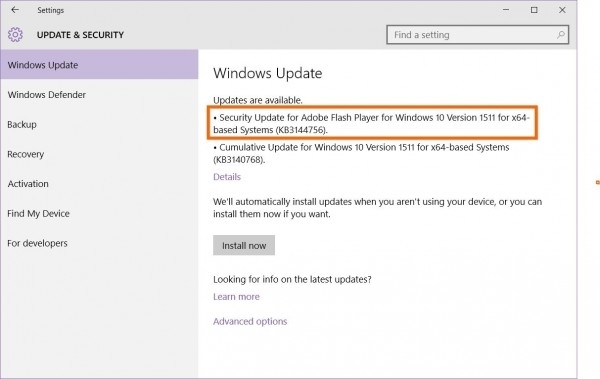 自Windows 8开始,Flash Player直接整合至IE浏览器中,所以当Adobe推出修复补丁的时候,微软也需要通过自己的更新渠道来邀请Windows用户进行更新。Windows 10系统中同样采用了这个更新策略,Flash Player整合至Edge浏览器和IE 11浏览器上。