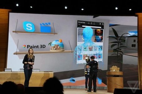 除此之外,微软还展示了一些在VR中的Windows 10应用,如用以3D内容创作的Paint 3D。