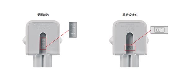其实除了原装电源线,最近苹果也在美国官网首页公布了交流电源插头转换器的召回计划。2003年至2015年期间,与Mac和某些iOS设备一同出货,并在欧洲地区、澳大利亚、新西兰、韩国、阿根廷和巴西市场出售的苹果双插交流电源插头转换器可能存在破损并造成触电的风险。对于这些旧款电源插头转换器,苹果提供免费更换为新款转换器的服务。