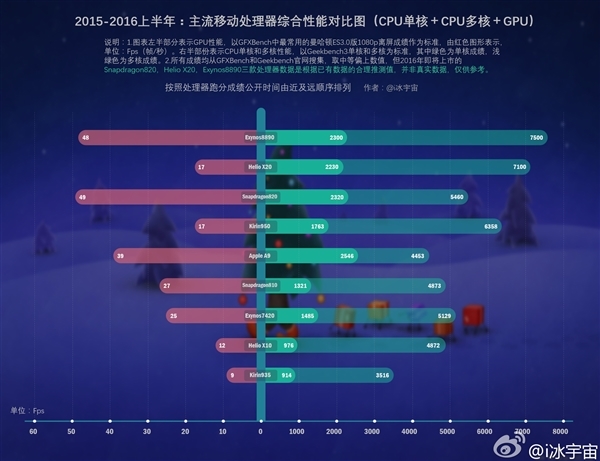 在最近一次曝光中,MT6797跑出了单线程2193、多线程6965的成绩,作为对比,苹果A9处理器的单线程成绩为2576,多线程达到了4478。而麒麟950的单线程仅为1871,多线程则是5383。骁龙820开发机的单线程成绩达到了2320,多线程成绩为5369。