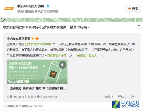 联发科在2015年的发展可谓是顺风顺水,虽然早前定位高端的Helio X10被小米公司使用在红米note2上,但出货量也因此倍增,目前国内主流的千元机也都采用了这颗性能强劲的芯片。在近日,联发科宣布2015年战绩的同时,通过官方微博还透露一个重要消息,首批搭载Helio P10(MT6755) 处理器的机型已经于今年年底量产,而到明年初,将会有更多款手机上市。