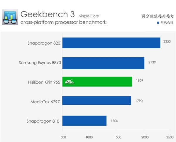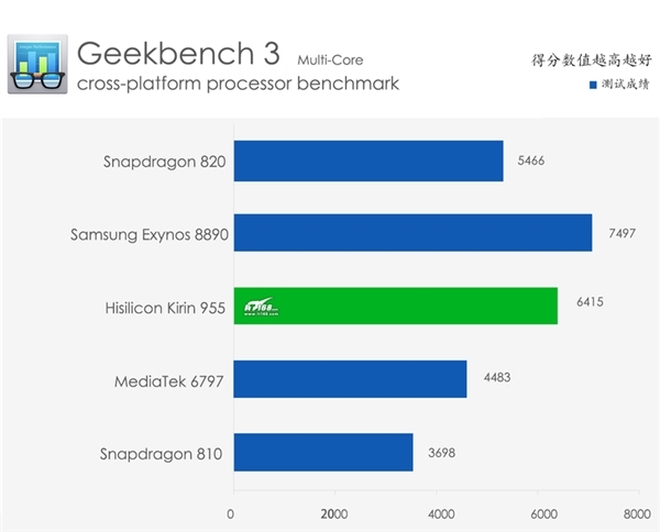 报道称,如果想简单粗暴的给麒麟955芯片进行排名,可参考骁龙820>三星Exynos 8890>骁龙810>麒麟955>MT6797。