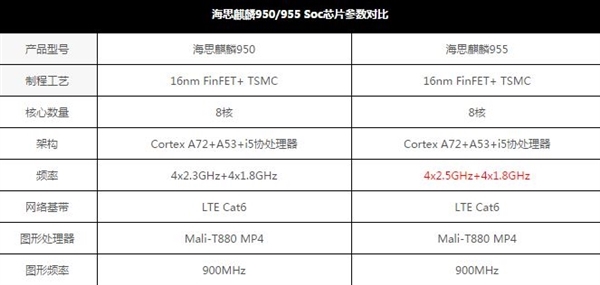 从纸面参数来讲,此次麒麟955最大的提升就是主频,四颗A72大核心从950的2.3GHz增加到了2.5GHz,虽然看似幅度不大,但对于手机处理器来说,在2GHz+上每进阶一个百分点,都像是摘取皇冠上的明珠,是对工艺、散热、品质细节的综合考量。
