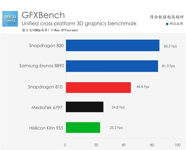 Big.little架构下,八核心以上的处理器都没有骁龙820(包括未亮相的A9)有优势,不过在多核下,麒麟955还是无悬念的超越820和十核的MT6797。