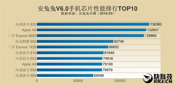 10万分已经是个很不错的成绩了,已经轻松超过了华为麒麟950(9.3万分左右),当然不能高通骁龙820、苹果A9、三星Exynos 8890比了,它们可以轻松13+万。