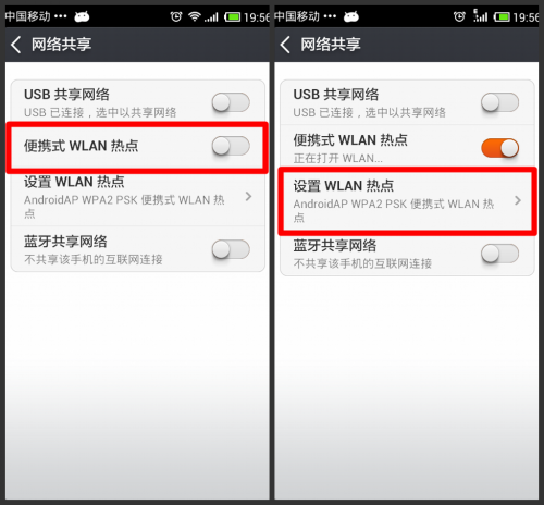 打开“便携式WLAN热点”后,“点击设置WLAN热点”