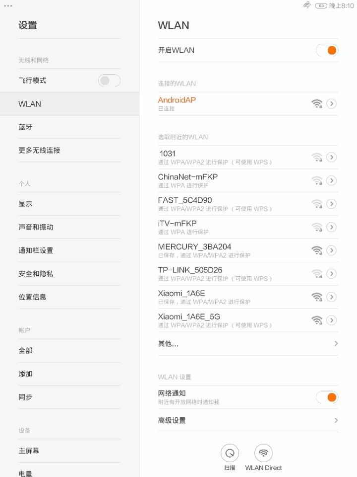 使用小米平板,搜索WIFI“AadroidAP”输入密码就可以连接无线,使用手机网络进行定位