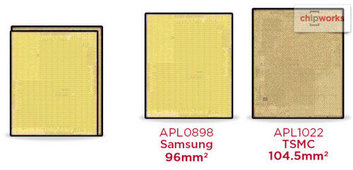 这两款处理器的区别并不止于型号,实际上,这两款有很大不同。根据 iFixit 的说法,APL0898 由三星代工,采用了三星 14nm FinFET 工艺制造;APL1022 由台积电代工,采用 16nm FinFET 工艺制造。