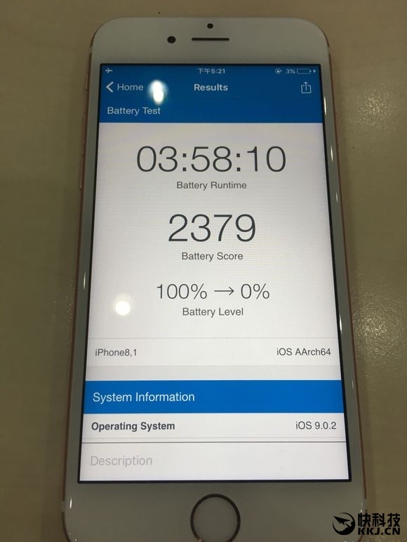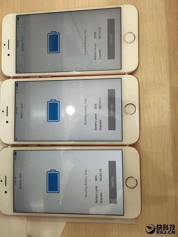 现在,贴吧网友@200zjf也进行了一项测试,他使用两台三星版iPhone 6S和一台台积电版iPhone 6S进行了续航测试,测试项目为GeekBench。测试时,三台手机全部打开飞行模式,清空后台,亮度设置为最低。