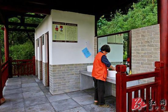 红网新宁站6月9日讯(分站记者 杨坚 郑慧 摄影 颜克明)“我去过全国许多有名的旅游风景区,象新宁山风景区把厕所建得这么洁净精美又富有人情味的,还是第一次见到。”近日,到世界自然遗产山旅游的上海游客朱先生感慨不已。至6月8日,山风景区已经新建和改建厕所22座,平均3.7平方公里就有一座旅游厕所。这些厕所的选址、设计风格、内部建设、如厕环境、标识牌、管理服务水平、人性化设计等方面,已经走在全国旅游厕所的前列。