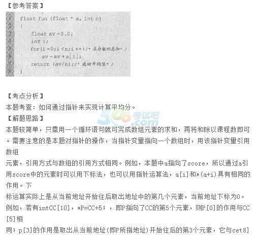 3、编写函数fun,其功能是:计算n门课程的平均分,结果作为函数值返回。