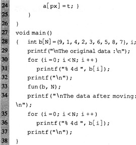 规定fun函数中的max存放当前所找的最大值,px存放当前所找最大值的下标。