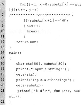 2、下列给定程序中函数fun的功能是:统计substr所指的字符串在str所指的字符串中出现的次数。