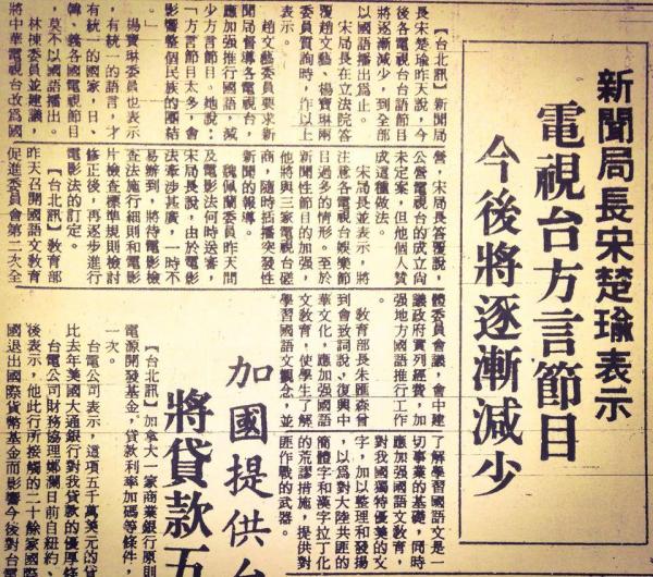 当时台湾省政府推行“说国语运动”,口号是:“语言不统一,影响民族团结”,强调说“国语”才是爱国,在学校老师授课,还有师生、学生之间交谈都必须使用“国语”,再加上电影院禁播方言、外语电影,并上街倡导大家说“国语”。
