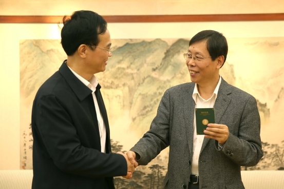 林宝金市长向崔希亮校长颁发畅游武夷护照