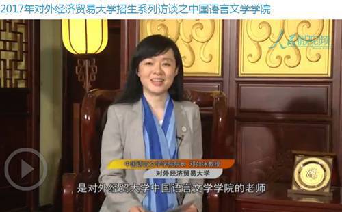 邓如冰:我们学院现在有两个本科专业,一个是汉语言文学专业,还有一个是汉语国际教育专业,但是我想提醒考生们注意的是,我们的汉语言文学专业后面有一个括号叫做商务汉语方向,我们也是依托学校的优势,来培养具有贸大特色的中文人才。什么是贸大特色呢?我想,考生们很多都知道,就是国际化、复合型,就是我们汉语言文学专业,不仅是像其他的学校那样,我们开设很多传统的汉语言文学方面的课程,但同时,我们也会大量地涉猎经贸大学的优势课程,经贸大学的经管类的课程,还有就是外语类的课程,包括英语和小语种这些课程。如果你在别的学校中文系学习,那些课程我们一样都不会少,但同时,你还会学到经贸大学的很多的特色课程。这些课程就是这两方面互补起来,我们的目标就是要打造中文好、外语好,懂经贸,同时具有国际视野的复合型国际化的人才。